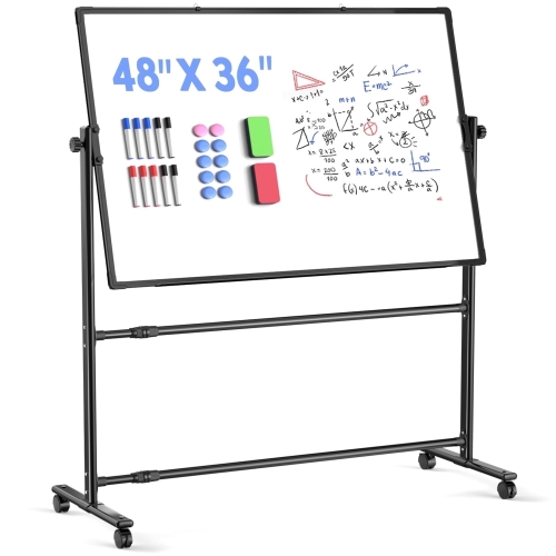 FOUKUS Double-Sided Magnetic White Board: 48" x 36" Mobile Dry Erase Board with Stand, Large White Board for Office, Home, School, Classroom - Markers, Eraser, Magnets Included
