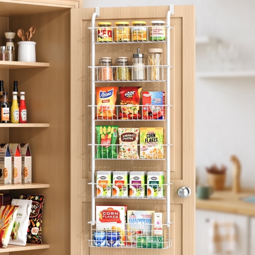 FOUKUS Over the Door Pantry Organizer: 6 Tier Stainless Steel Kitchen Organizers and Storage, Hanging Spice Rack, Easy to Install - White