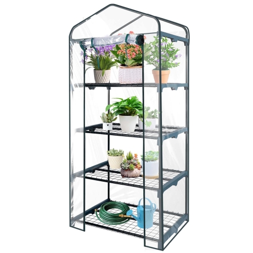 FOUKUS 4 Tier Mini Greenhouse: 23"x17"x57" Small Greenhouse with Steel Frame and Clear PVC Cover for Indoor Outdoor Use – Garden, Patio, Balcony – Seedlings, Herbs, Flowers